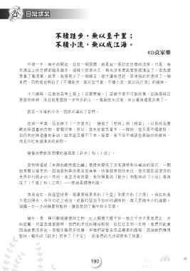 目標,同時我也明白了「不積跬步,無以至千里;不積小流,無以成江海」的道理。