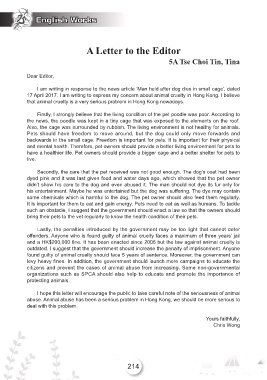 17 April 2017. I am writing to express my concern about animal cruelty in Hong Kong. I believe