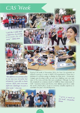 various skills and overcome CAS - Creativity, Action and Service, their ultimate goal was to make