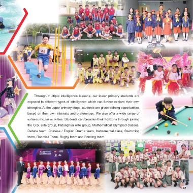 Debate team, Chinese / English Drama team, Instrumental class, Swimming
