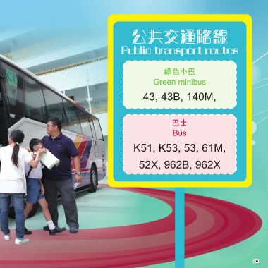ʮʹஷ༩ᇞ 1VCMJD USBOTQPSU SPVUFT ၠЍʃˋ Green minibus 43, 43B, 140M, ˋɻ Bus K51, K53, 53, 61M, 52X, 962B, 962X 26