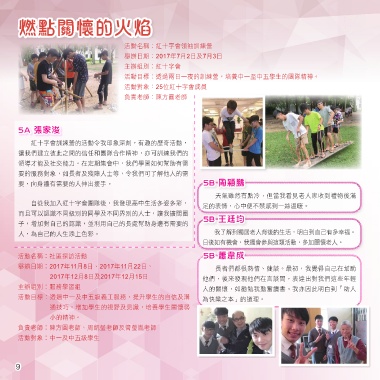 自從我加入紅十字會團隊後,我發現高中生活多姿多彩, 足的表情,心中便不禁感到一絲溫暖。