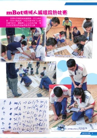 mBot機械人編程設計比賽 同學先用環保紙建構路軌,設計越複 雜,所得分數越高。同學然後利用iPad軟 件編寫程式,讓機械人可沿路軌走動,最 快抵達終點或完成最長路程者為勝。 在嘗試中學習 編寫程式後,要嘗試將mBot放在路軌上行走,並即時修正偏差。 齊心就事成 雙十同學輕鬆掌握mbot操作規程 雙十同學謀定後動,先構思才編寫程式,令人佩服。 姊妹學校交流團 3
