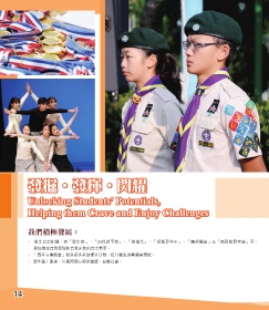 發掘‧發揮‧閃耀 Unlocking Students' Potentials, Helping them Crave and Enjoy Challenges 我們積極發展: ‧ 學生自治組織,如「學生會」、「四社幹事會」、「領袖生」、「卓越青年軍」、「團契職員」及「圖書館管理員」等, 發揮學生自我管理和自我完善的自治質素。 ‧ 「周年音樂晚會」和多姿多采的課外活動,提升學生的興趣與潛能。 ‧ 學生義工服務,培養同理心和承擔感,回饋社會。 14