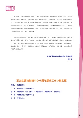 王兆生領袖訓練中心十週年慶典工作小組名單