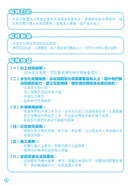 決問題的能力,建立互助網絡,達到彼此關懷及支援的目的: