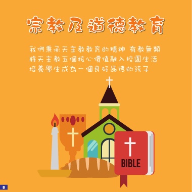 ֚ʿ༸ᅃԃ 我們秉承天主教教育的精神 有教無類 將天主教五個核心價值融入校園生活 培養學生成為一個良好品德的孩子