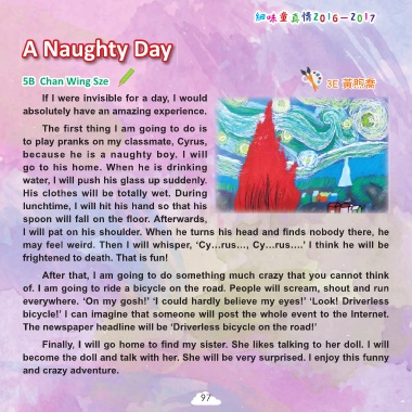 Finally, I will go home to fi nd my sister. She likes talking to her doll. I will