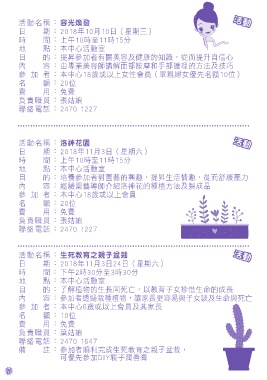 參加者 : 本中心18歲或以上女性會員(單親婦女優先名額10位)