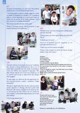 “My best memory in Science was during Chemistry Watch our bunsen flames burn brighter than the sun.