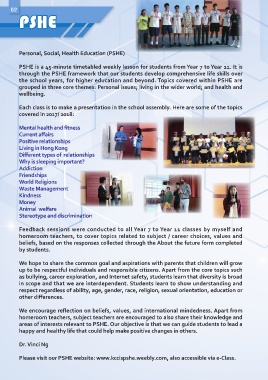 areas of interests relevant to PSHE. Our objective is that we can guide students to lead a