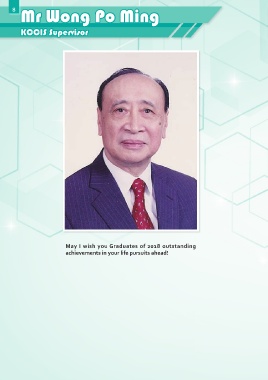 Mr Wong Po Ming 8 KCCIS Supervisor May I wish you Graduates of 2018 outstanding achievements in your life pursuits ahead!