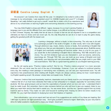 message to my schoolmates. I was awarded Level 5 in HKDSE English and Level 5** in English