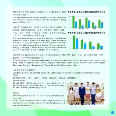 ˙本校學生於全部核心科目及所有選修科目,考獲3級或以上的百 考生考獲4級或以上高於全港日校考生的科目