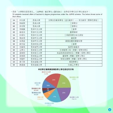 ˙透過「大學聯合招生辦法」(JUPAS)獲派學位人數為54人。其中部分學生的升學出路如下: