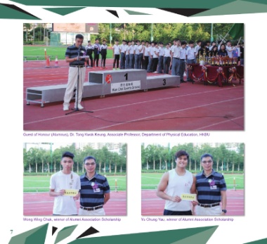 Guest of Honour (Alumnus), Dr. Tong Kwok Keung, Associate Professor, Department of Physical Education, HKBU Wong Wing Chak, winner of Alumni Association Scholarship Yu Chung Yau, winner of Alumni Association Scholarship 7