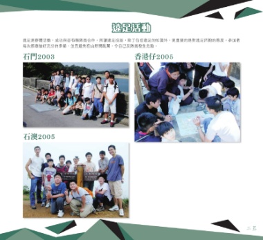 遠足活動 遠足是群體活動,成功與否有賴隊員合作。所謂遠足技能,除了包括遠足的知識外,更重要的是對遠足所抱的態度。參加者 每次都應做好充分的準備,並且避免在山野間亂闖,令自己及隊員發生危險。 石門2003 香港仔2005 石澳2005 二五