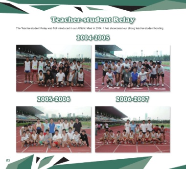 Teacher-student Relay The Teacher-student Relay was first introduced in our Athletic Meet in 2004. It has showcased our strong teacher-student bonding. 2004-2005 2005-2006 2006-2007 53