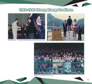 1989-1990 Hong Kong Stadium Supervisor Rev. J. Serafin, passing the flag to Athlete Representative nd Attaining the Overall 2 Runner-up 72