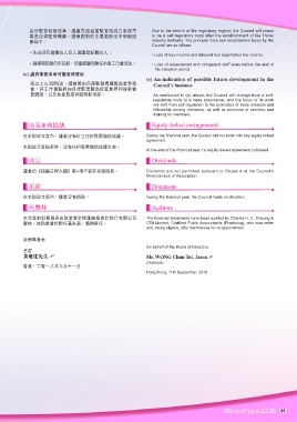 議會的《組織章程大綱》第4項不容許派發股息。 Dividends are not permitted pursuant to Clause 4 of the Council’s
