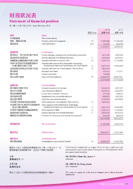 第四十八至六十四頁的財務報表已於二零一八年九月十一日 The financial statements on pages 48 to 64 were approved and