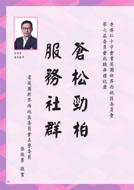 第 香港紅十字會耆英團 七 服務社群 蒼松勁柏 屆委員會就職典禮誌慶 張俊勇 榮譽勳章 耆英團 新界西 新界西 地區委員會 地區委員會 名譽委員 張俊勇 敬賀 16