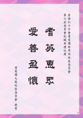 第 香港紅十字會耆英團 七 愛善盈懷 耆英惠眾 屆委員會就職典禮誌慶 新界西 地區委員會 耆英團 九龍 地區委員會 敬賀 23