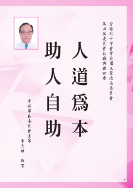 第四屆委員會就職典禮誌慶 香港紅十字會耆英團九龍地區委員會 助人自助 人道為本 耆英事務委員會主席 李天雄 敬賀 11