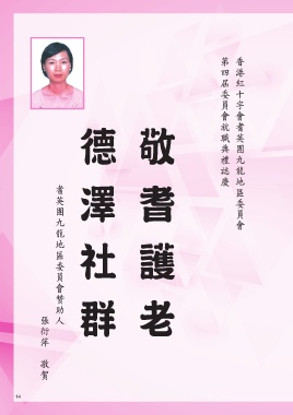 第四屆委員會就職典禮誌慶 香港紅十字會耆英團九龍地區委員會 德澤社群 敬耆護老 耆英團九龍地區委員會贊助人 張衍萍 敬賀 14