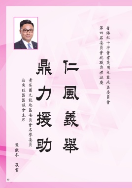 第四屆委員會就職典禮誌慶 香港紅十字會耆英團九龍地區委員會 鼎力援助 仁風義舉 油尖旺區區議會主席 耆英團九龍地區委員會名譽委員 葉傲冬 敬賀 18