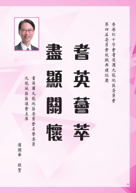 第四屆委員會就職典禮誌慶 香港紅十字會耆英團九龍地區委員會 盡顯關懷 耆英薈萃 九龍城區區議會主席 耆英團九龍地區委員會名譽委員 潘國華 敬賀 19