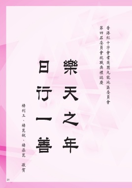 第四屆委員會就職典禮誌慶 香港紅十字會耆英團九龍地區委員會 日行一善 樂天之年 楊利玉、楊崑銳、楊丞崑 敬賀 26