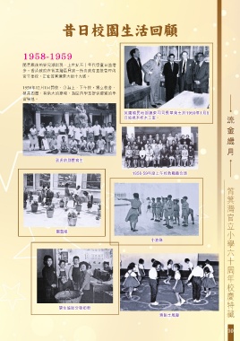 昔日校園生活回顧 1958-1959 ᎇ䋠ܝٙᏃՅᆓ̈ତdɪ˰ߏʞɤϋ˾ኪഁ˚ूᄣ εf࠰ಥִ݁ί⓳၎ᝄਜጳܔɓהִٜ݁͟ટ၍ଣٙ ֜ͭኪࣧd֛ѧ⓳၎ᝄ؇ɽɤɘf 1958ϋ12˜1˚කࣧdʱމɪeɨʹࣧfዹͭࣧٸd ᅽ৷̬ᄴdϞਁɽٙఙdމਜʫኪഁԶᎴሯٙኪ ୦ఙήf 英國殖民地部遠東司司長華萊士於1959年1月8 日巡視本校木工室。 到虎豹別墅寫生 1958-59年度上午校教職員合照 園藝組 小狼隊 學生協助分發奶粉 齊跳土風舞 10