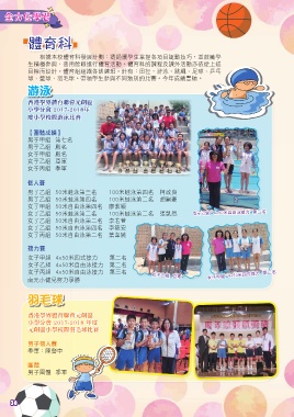 球、籃球、羽毛球。帶領學生參與不同類別的比賽。今年成績豐碩。