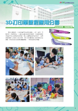 STEM @LCP Makerspace 3D打印筆課程應用分享 許莊斌老師 伍孟欣老師 對於立體創作,3D筆的應用有著很多優點,方便、乾淨、可 塑性高,亦相對安全,不過以往礙於使用成本較高,只能將有限的 資源給予高年班選修科的同學,現在在優質教育基金資助下,我們 就能夠購入足夠的3D筆及材料,將3D筆的應用納入低年級的正規 課程,同時亦能向友校提供體驗課程,一同享受創作的樂趣。 3