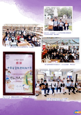 為校爭光,你我都得─三位同學榮獲哈佛圖書獎, 並出席頒獎典禮,滿載而歸! 燕京書院師生到訪本校圖書館交流,氣氛融洽。 每年圖書館舉辦的聖誕聯誼日,定必高朋滿座,盡興而歸! 施比受更有福─圖書館鼓勵學生參加「小母牛‧開卷助人」 活動,培養學生助人自助的良好美德。 從學生臉上的表情就可知,「世界閱讀日. 午間茶聚」是最受歡迎的圖書館活動。 31