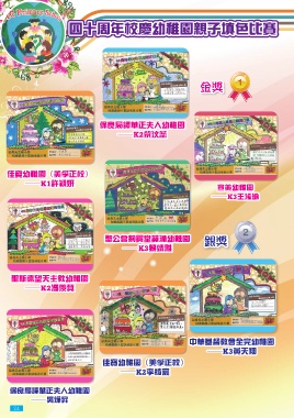 四十周年校慶幼稚園親子填色比賽 四十周年校慶幼稚園親子填色比賽 金獎 保良局譚華正夫人幼稚園 —K2黎汶蕊 佳寶幼稚園(美孚正校) —K1許穎妍 宣美幼稚園 —K3王浠瑜 聖公會荊冕堂葵涌幼稚園 銀獎 —K3蔡靖雅 聖斯德望天主教幼稚園 —K2馮羨萁 中華基督教會全完幼稚園 —K3黃天翔 佳寶幼稚園(美孚正校) —K2李綺宸 保良局譚華正夫人幼稚園 —吳燁昇 24