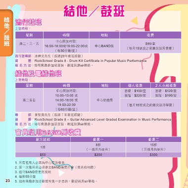 16:00-18:00或19:00-22:00或      中心BAND房            (每月15號或之前繳交該月學費)