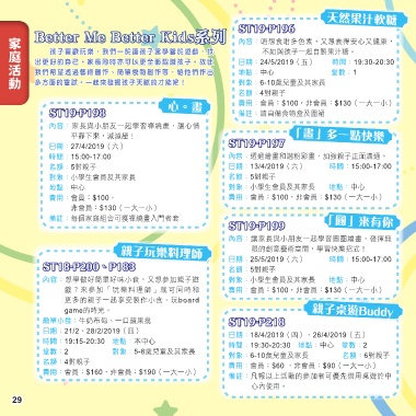 時間:15:00-17:00                                   內容:透過繪畫和諧粉彩畫,加強親子正面溝通。