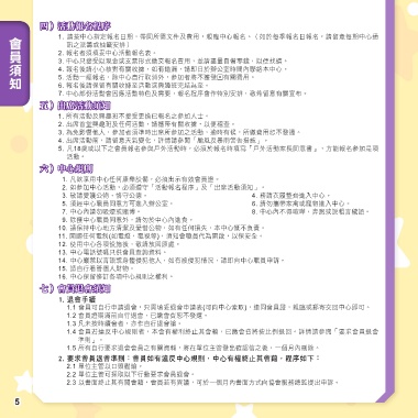 3. 敬請愛護公物,恪守公德。 4. 務請衣履整齊進入中心。
