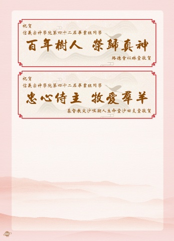 祝賀 信義宗神學院第四十二屆畢業班同學 百年樹人 榮歸真神 路德會以琳堂敬賀 祝賀 信義宗神學院第四十二屆畢業班同學 忠心侍主 牧愛群羊 基督教尖沙咀潮人生命堂沙田支堂敬賀 86
