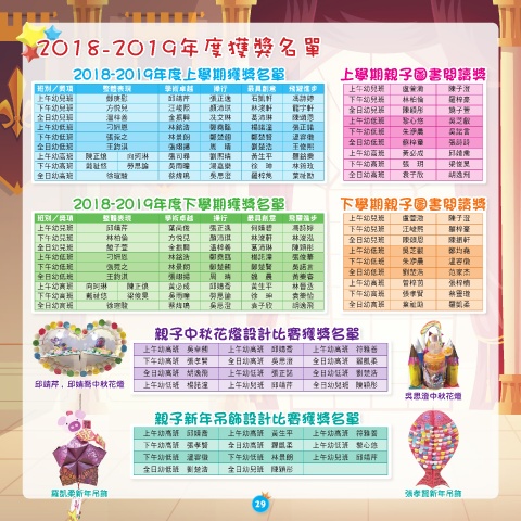 2018-2019年度上學期獲獎名單 上學期親子圖書閱讀獎