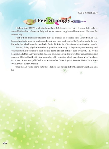 Once more, I would like to state that I believe that having daily P.E. lessons would help us a