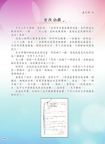 次。我下次不要再看見你塗改分數。」我回答:「我不會的。」