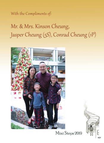 With the Compliments of: With the Compliments of: Mr. Teddy Lui, Mrs. Connie Lui, Mr. & Mrs. Kinson Cheung, Jamie John Lui (4D) & Jasper Cheung (5S), Conrad Cheung (1P) Jayden John Lui (1M) 251