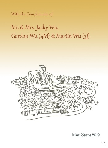 With the Compliments of: Mr. & Mrs. Jacky Wu, Gordon Wu (4M) & Martin Wu (3J) 279