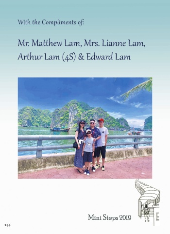 With the Compliments of: Mr. Matthew Lam, Mrs. Lianne Lam, Arthur Lam (4S) & Edward Lam 294