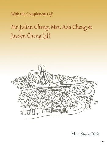 With the Compliments of: Mr. Julian Cheng, Mrs. Ada Cheng & Jayden Cheng (5J) 297
