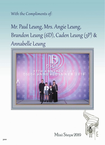 With the Compliments of: Mr. Paul Leung, Mrs. Angie Leung, Brandon Leung (6D), Caden Leung (3P) & Annabelle Leung 300
