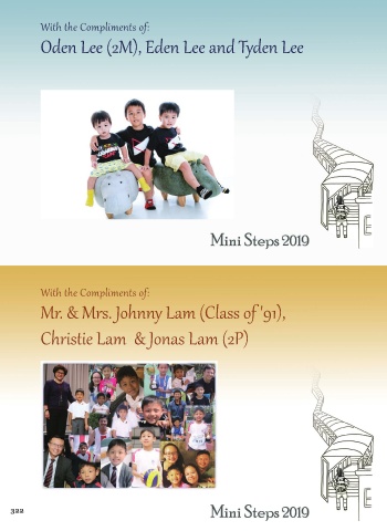 With the Compliments of: Oden Lee (2M), Eden Lee and Tyden Lee With the Compliments of: Mr. & Mrs. Johnny Lam (Class of '91), Christie Lam & Jonas Lam (2P) 322
